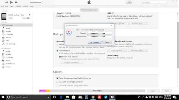 Obwohl Apple es Ihnen erlaubt, das Gerät weiterhin zu sichern und mit Ihrem PC zu synchronisieren und später Dateien aus dem Backup wiederherzustellen, wäre es unmöglich, Dateien aus diesen Backups wiederherzustellen, insbesondere wenn Sie das Passwort vergessen haben. Es sollte beachtet werden, dass selbst wenn Sie den Computer ändern und den Speicherortpfad ändern, Sie keine Möglichkeit haben, die Dateien aus dem Backup wiederherzustellen, wenn es passwortgeschützt ist. Es scheint, als ob Apple einen zusätzlichen Schritt unternommen hat, indem es das Passwort im System verschlüsselt hat, damit niemand es knacken kann.